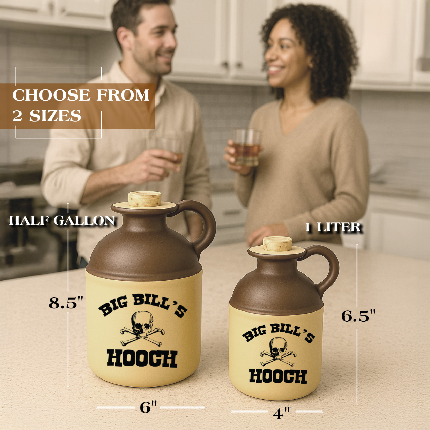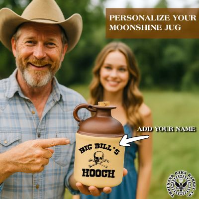Introducing the Big Bill’s Hooch Personalized Moonshine Jug—a vintage-style ceramic jug designed for whiskey lovers, home distillers, and anyone who appreciates rustic Southern charm. Crafted with an old-fashioned two-tone stoneware look, this customizable moonshine jug features bold lettering and a classic skull-and-crossbones graphic for authentic bootlegger flair. Perfect as a bar display piece, man cave décor, or unique gift for birthdays, holidays, and groomsmen, this collectible jug adds character to any space. Whether you use it as whiskey décor, farmhouse kitchen décor, or a fun conversation starter, this retro moonshine jug brings prohibition-era spirit to your home. Personalize it for unforgettable gifting. Durable, eye-catching, and handcrafted for timeless appeal, Big Bill’s Hooch becomes the standout piece in any rustic bar or bourbon collection. Ideal for moonshine enthusiasts, hobby distillers, and fans of Western or Appalachian décor.